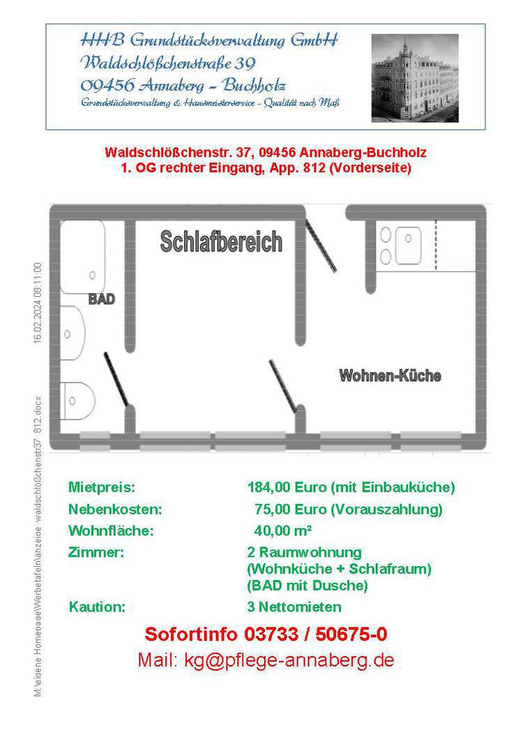 Seniorenpflegeeinrichtung am Schottenberg; Waldschlößchenstraße 39; 09456 Annaberg-Buchholz Tel.: 03733 / 50675-0 Fax: 03733 / 50675-15 Mail: spe@pflege-annaberg.de Telefon Wohnbereich 1: 50 67 5 - 21 Wohnbereich 2: 50 67 5 - 22 Wohnbereich 3: 50 67 5 - 23